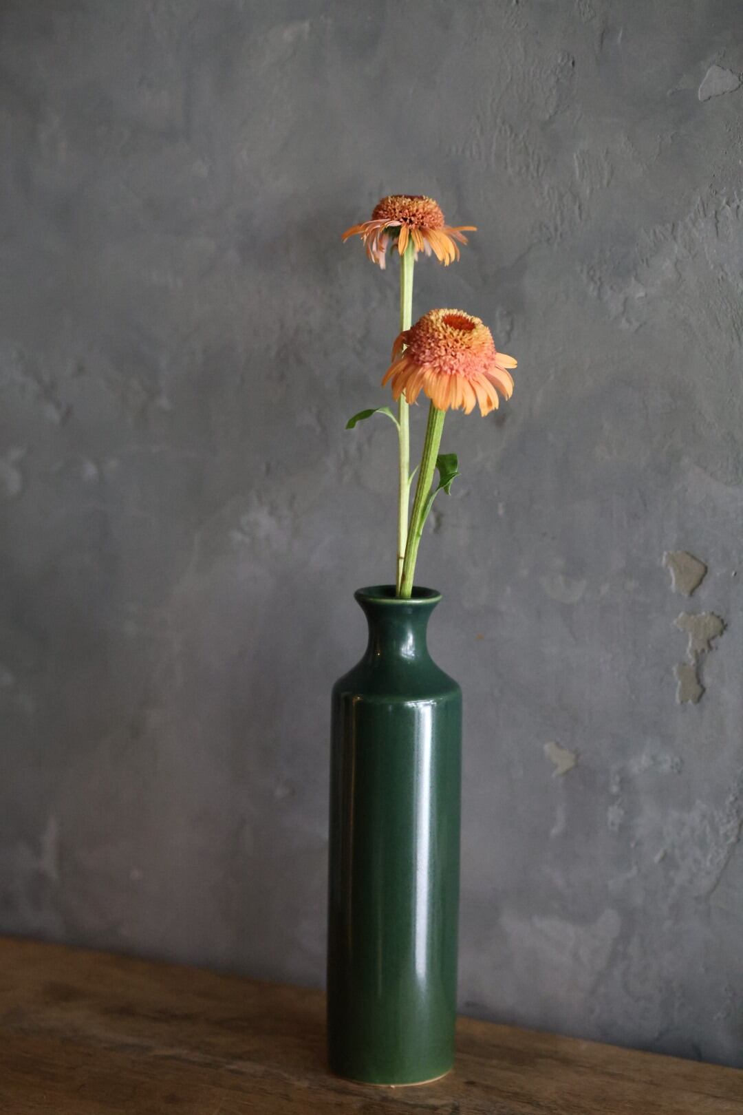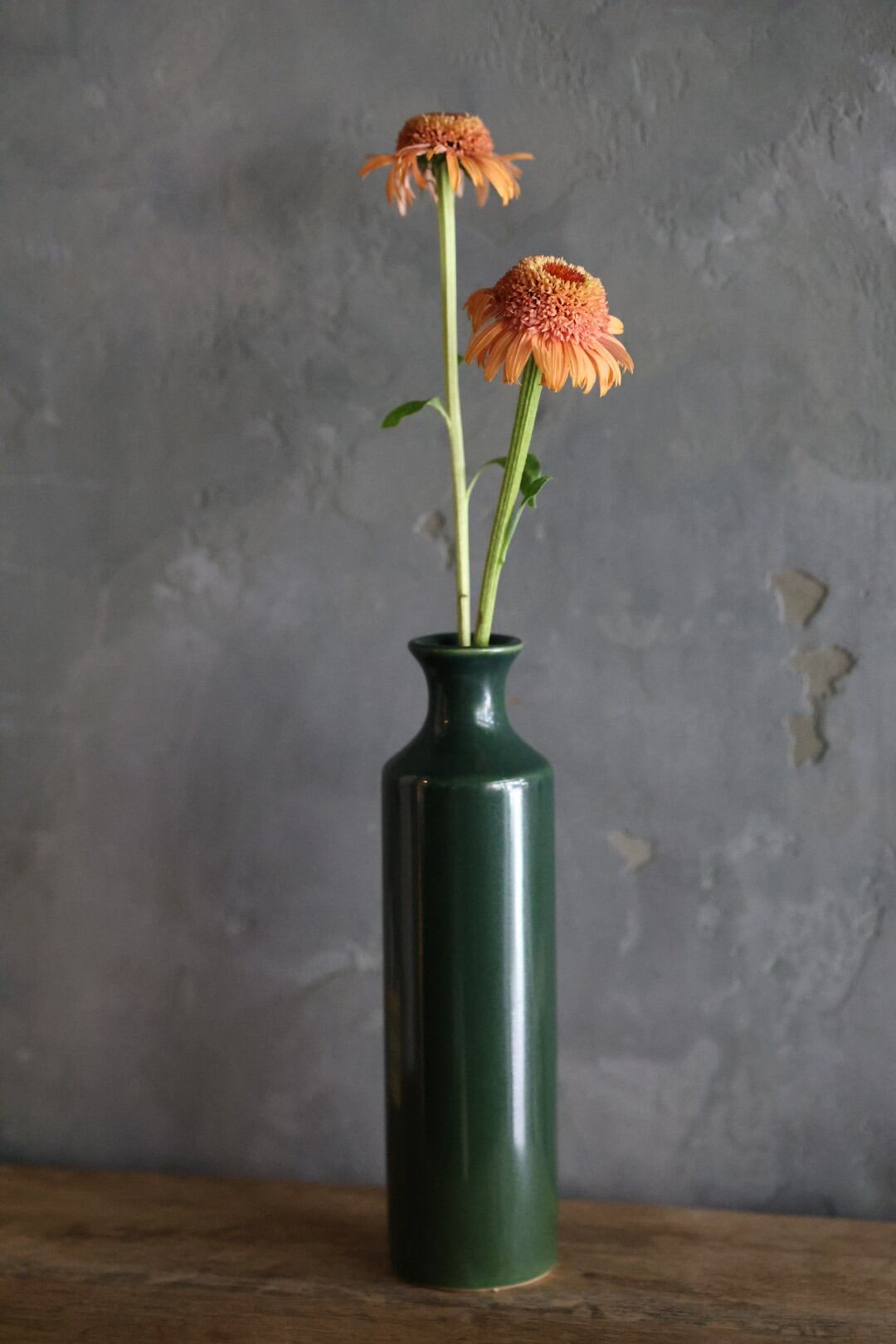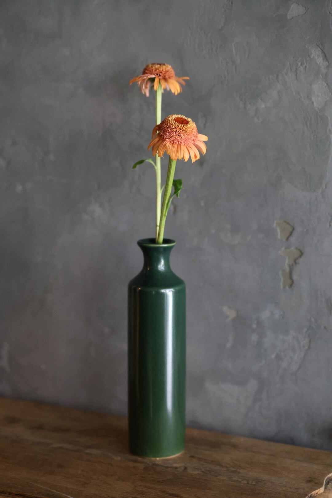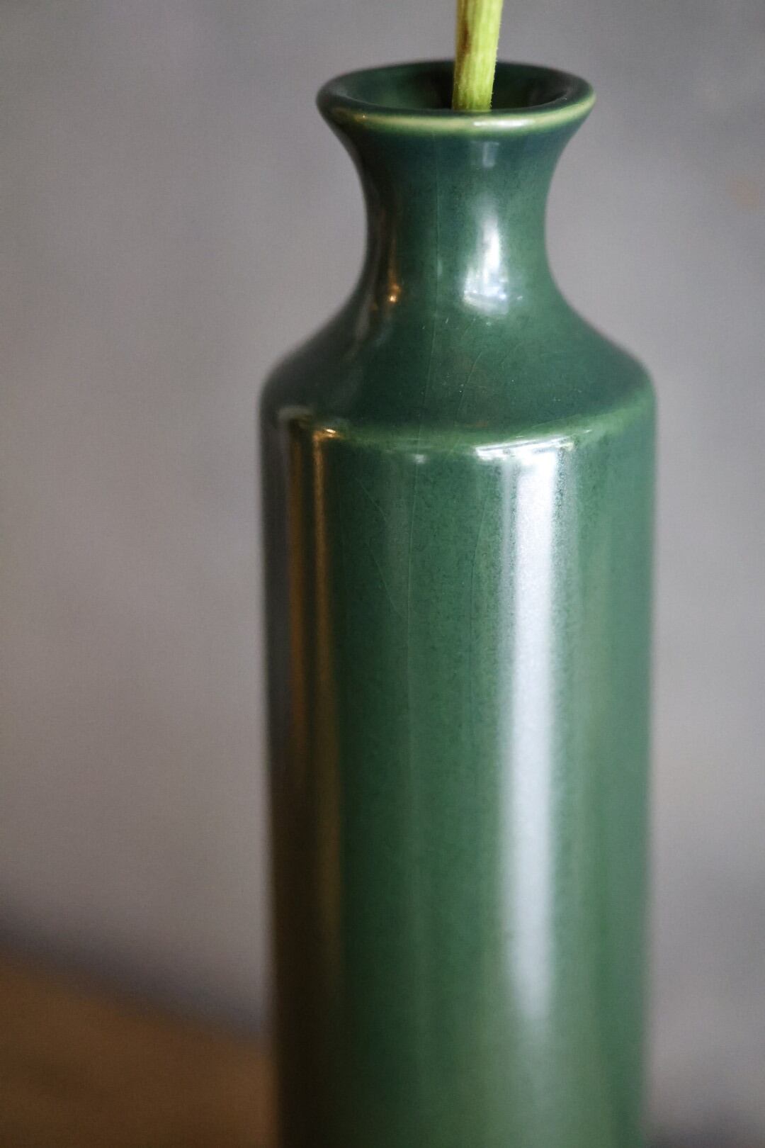 深いグリーンのオリーブカラーが特徴のセラミック製フラワーベース。