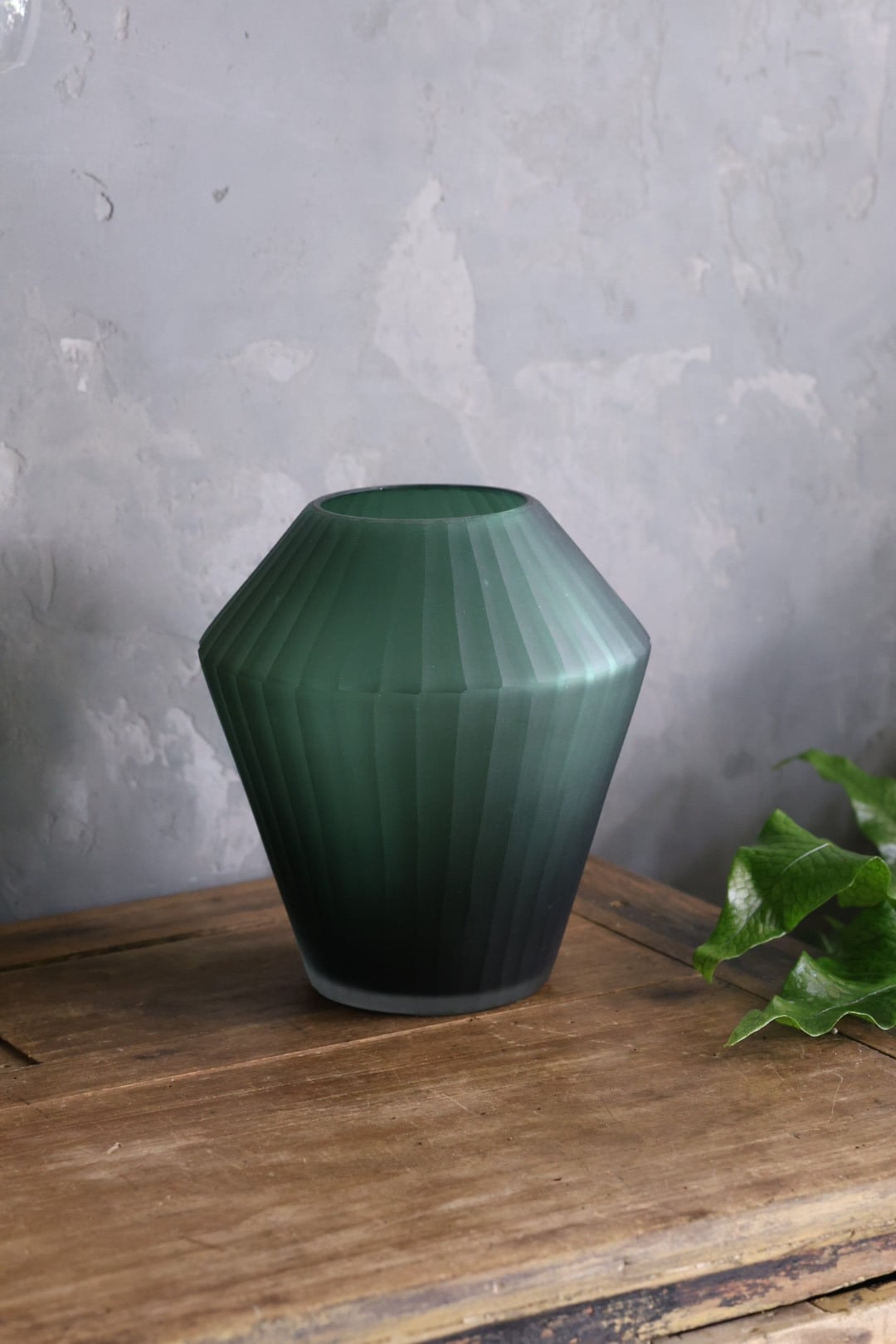 フロストガラスの深みのあるグリーン。口も大きいため、大きめのブーケを活けるのに最適です。