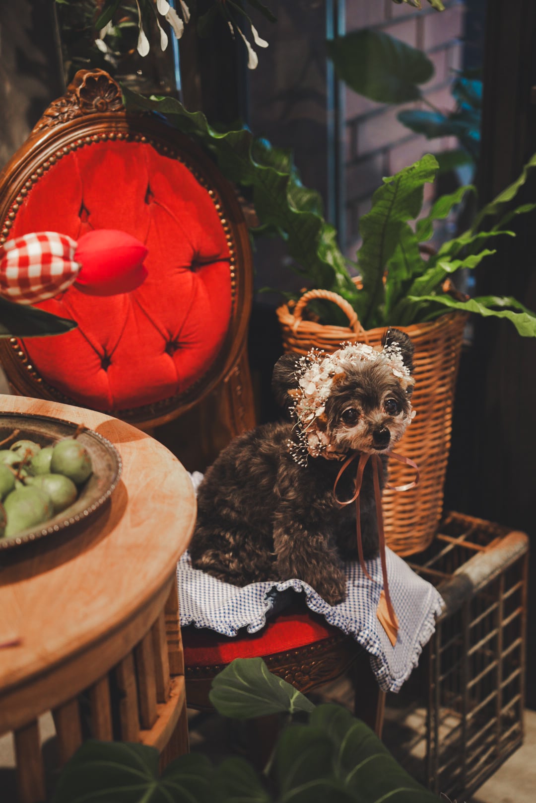 プリザーブドフラワーの紫陽花をメインにお作りした子供用/ペット用の花冠です。