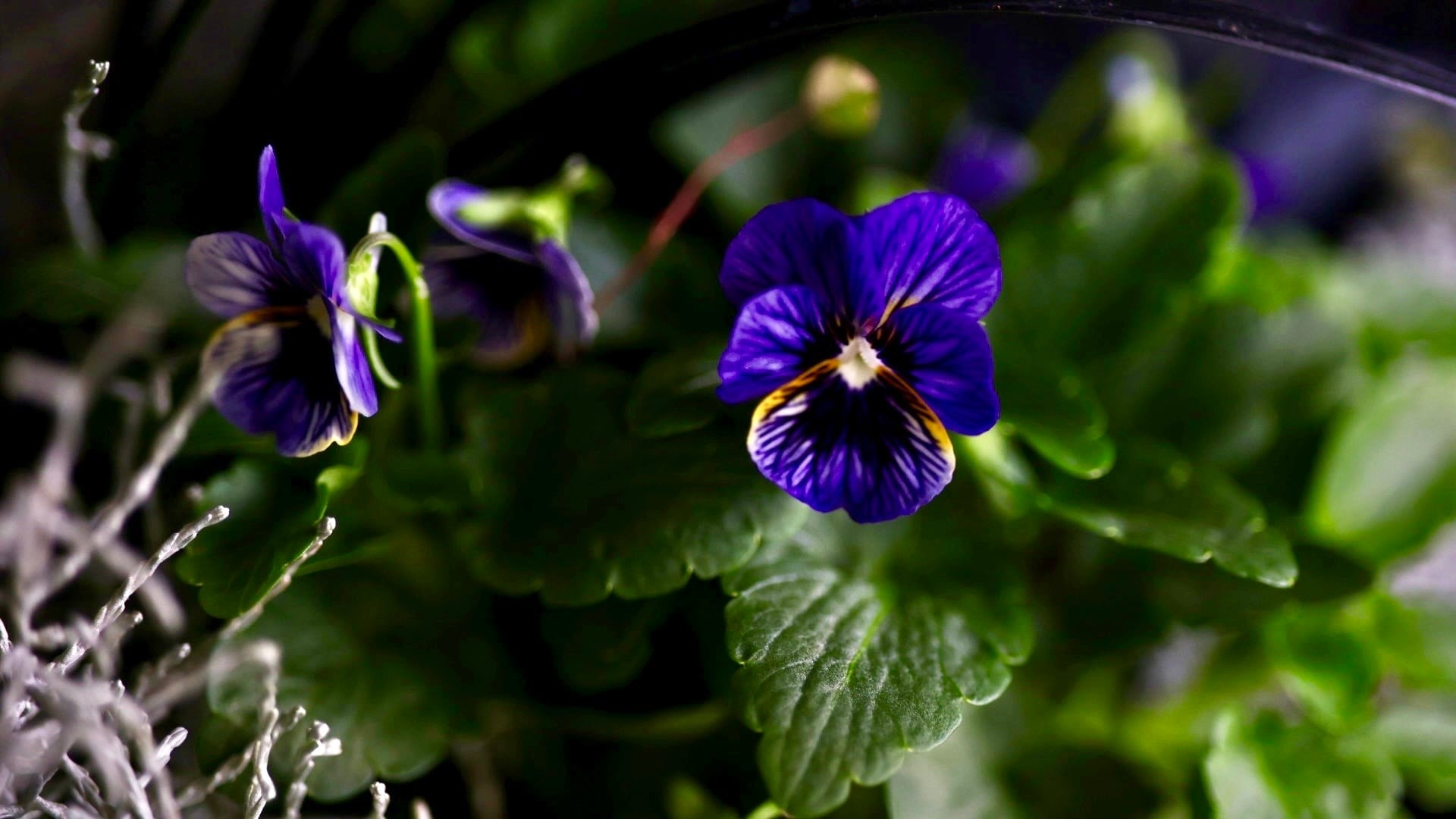 ビオラ タイガーアイから派生したブルータイガーを使用した寄せ植えです。