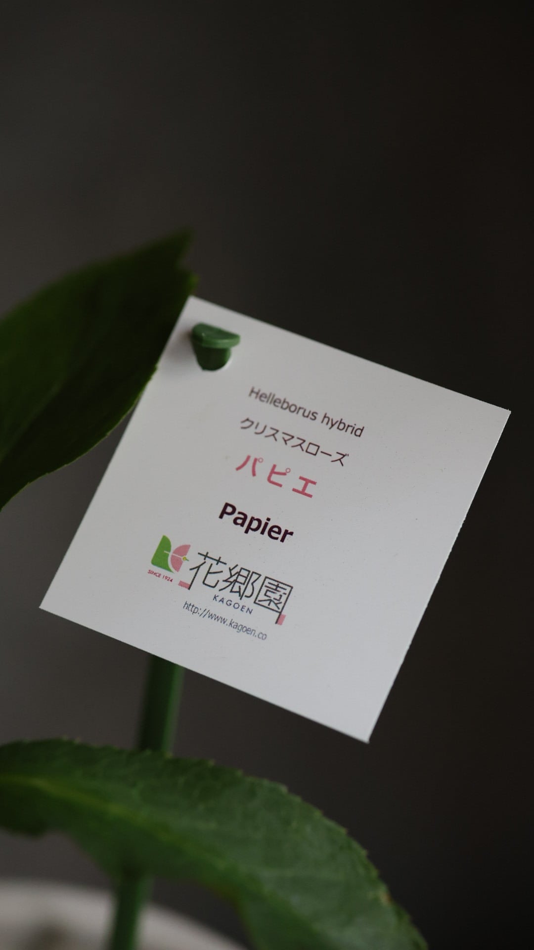 白にほんのり筆でなぞったようなかすり模様。圧倒的な透明感と、存在感。相反する二つの印象が同居する、一度見たら忘れられない個性的なパピエ。花郷園さんらしいひと株です。
