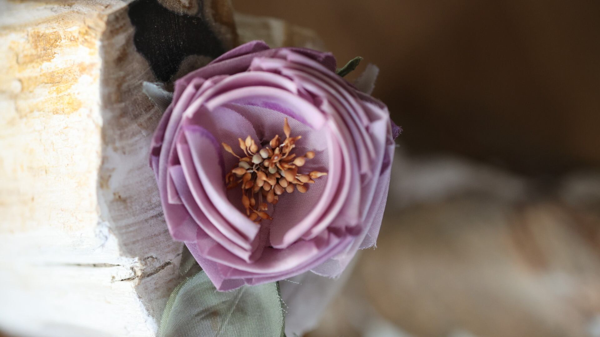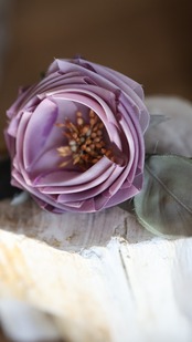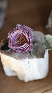 手染めの布で表現された、独特の色使いの花たち。